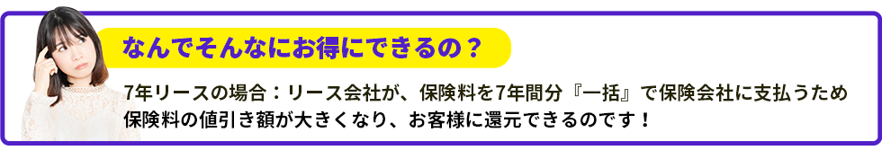 事故の有無に関わらず、リース契約期間中は等級も保険料もず~っと一律料金!