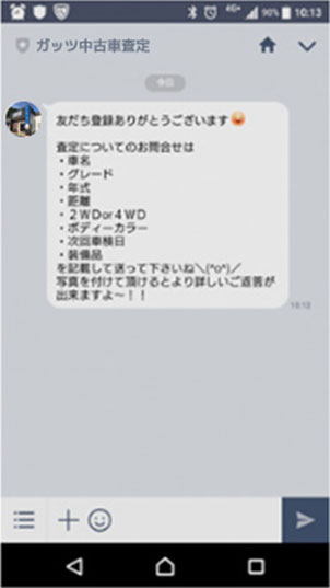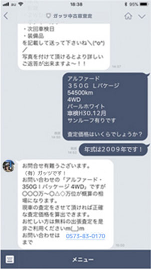 送っていただいた情報からガッツ査定相場(概算)を返信いたします。